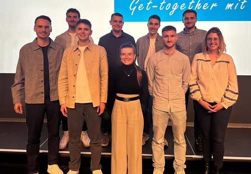 Vordere Reihe von links: Lucas Brucker (Ausbilder), Kilian Schmider (Preisträger), Melissa Storz (Preisträgerin), Nico Mellert (Preisträger), Lena Szameitat (Ausbilderin). Hintere Reihe von links: Janik Neumaier (Ausbilder), Johannes Sum (Lobträger), Lars Baumann (Lobträger), Niklas Schwendemann (Ausbilder).