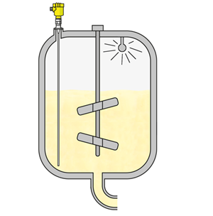 L’utilisation d’un capteur radar à impulsions guidées monté au sommet de la cuve constitue une alternative intéressante. Indépendant de la masse volumique du fluide et de la mousse pouvant se former en surface lorsque la cuve est agitée, ce capteur à l’avantage de donner une valeur exacte du niveau en toutes circonstances.