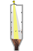 De VEGAPULS 69 werkt met een zendfrequentie van 80 GHz en een antenne van ca. 75 mm. Daarmee wordt een openingshoek van slechts 4° bereikt. Bij een radarsensor met een zendfrequentie van 26 GHz is de openingshoek ongeveer 10° bij een antenne van dezelfde grootte. De 80 GHz-straal gaat daarentegen langs ingebouwde elementen of afzettingen op de silowand. Dit maakt de meting zekerder en betrouwbaarder.