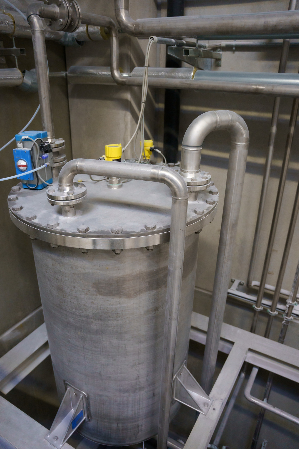 Segurança dupla: Neste reservatórios do processo, um sensor de radar de onda guiada VEGAFLEX 81 e uma chave de nível vibratória VEGASWING 63 garantem uma medição precisa da camada separadora e, ao mesmo tempo, uma proteção confiável contra enchimento excessivo.
